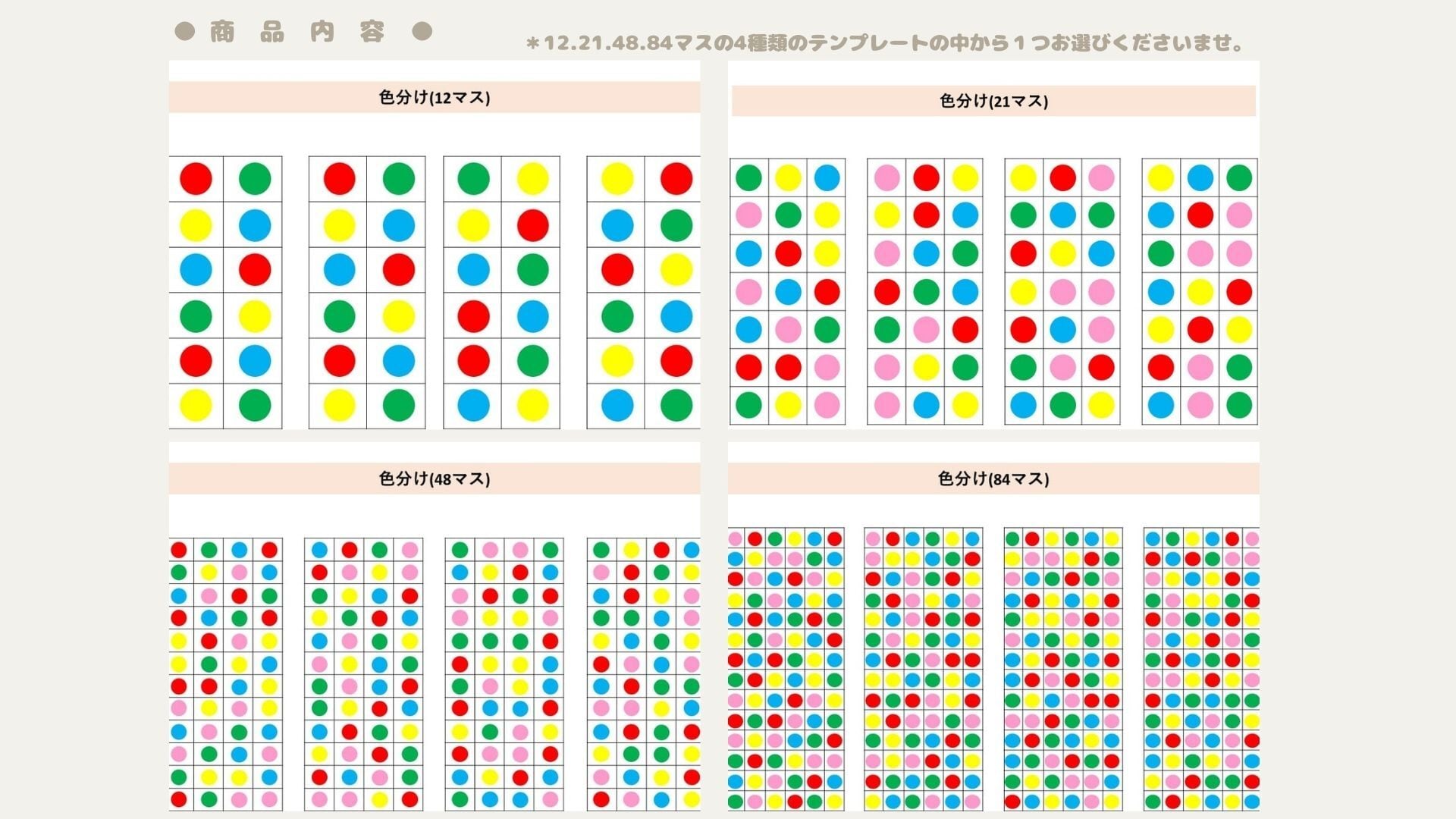 ・12マス・21マス・48マス・84マスの4種類のテンプレートから1種類ご選択ください。
