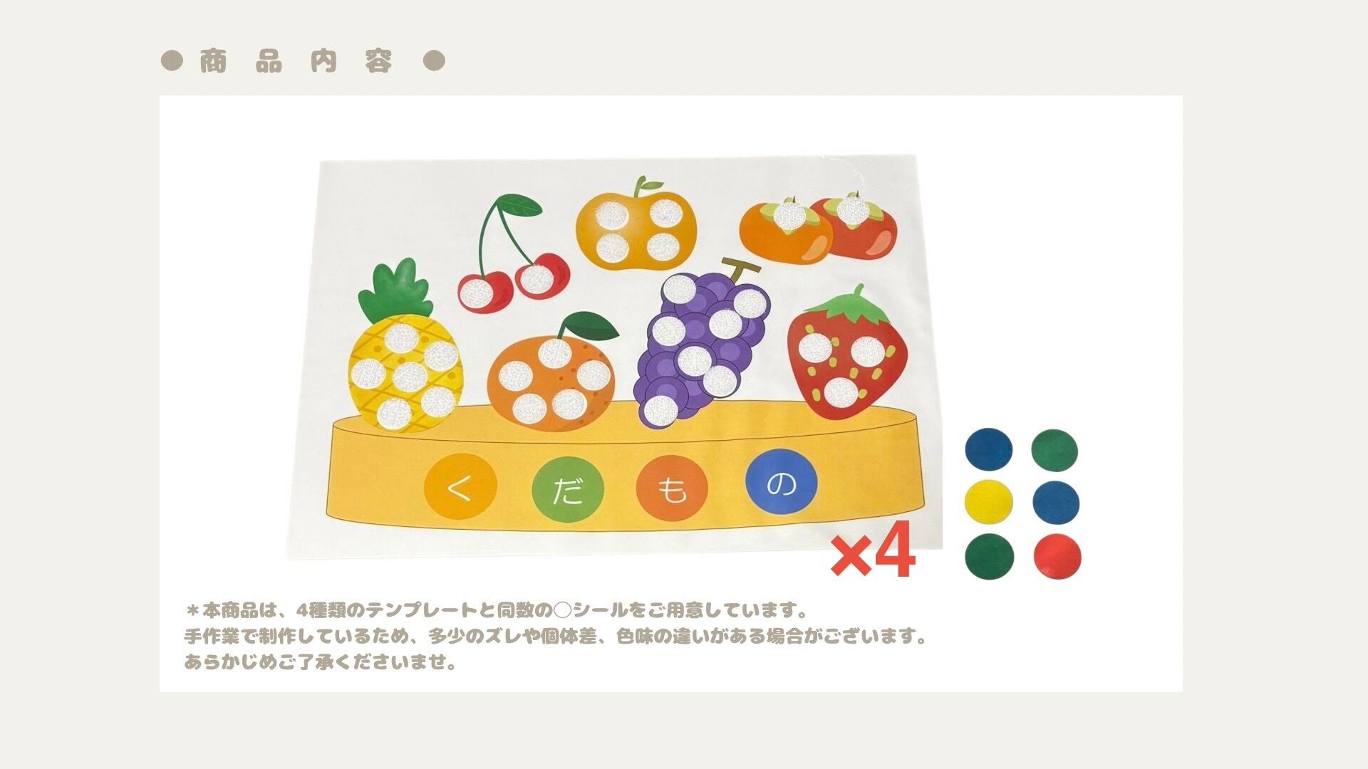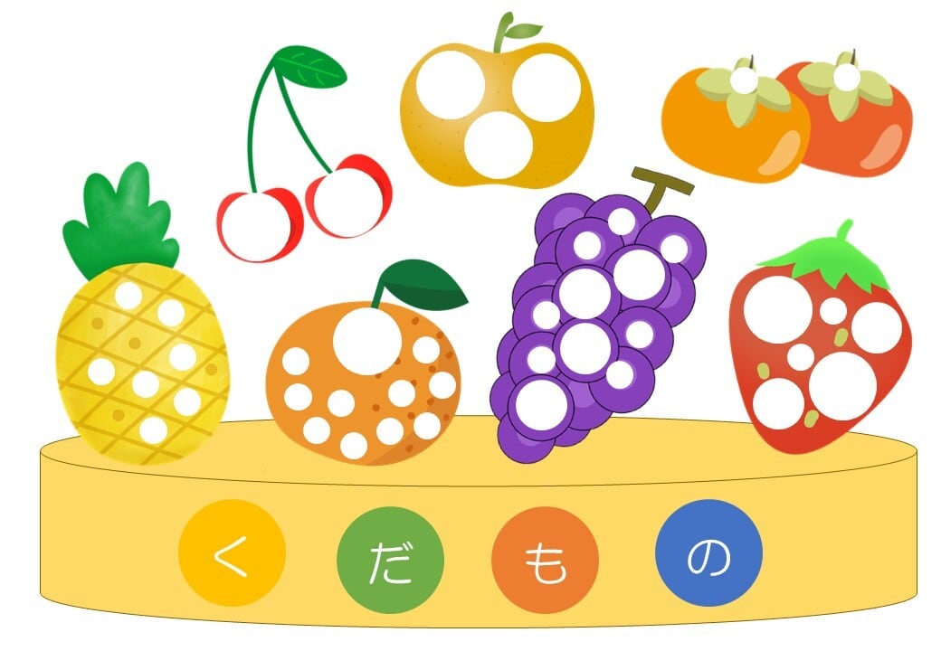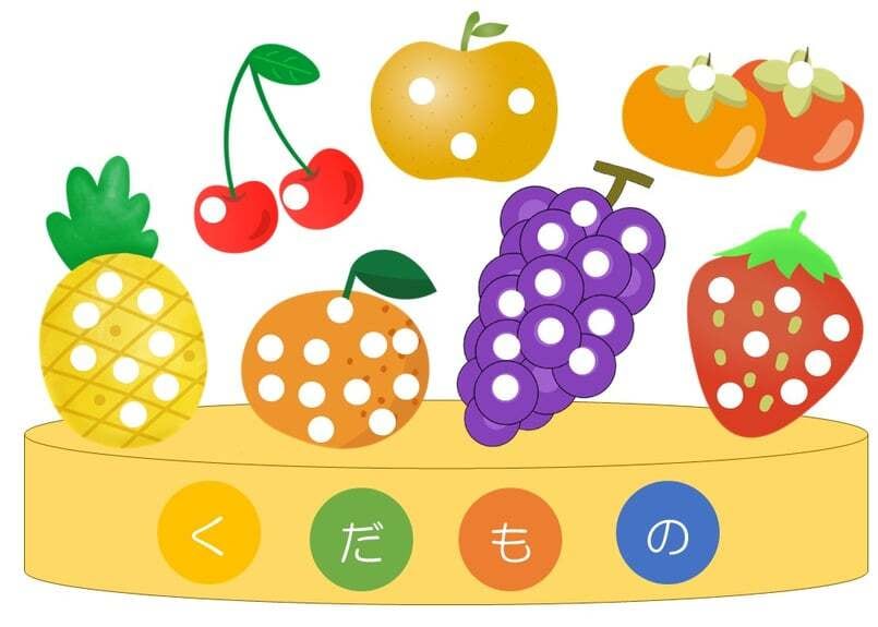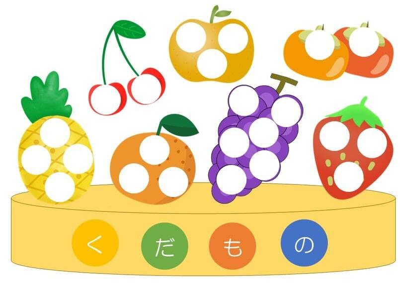 「果物シール貼り教材」です。